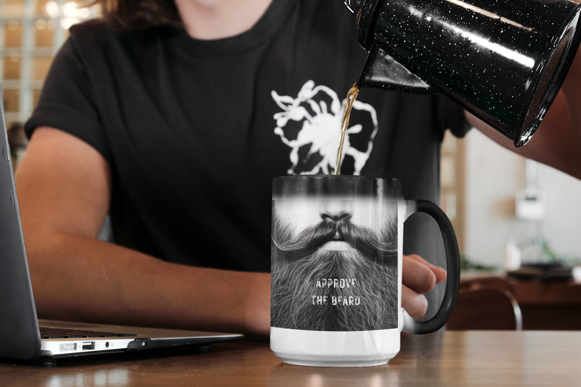 A great way to show off your support for the beard and beard in uniform is with this color morphing mug. This mug is a subtle reminder to your friends, family and coworkers that you're an approved beardo. Complete with a list of 10 reasons to approve the beard.