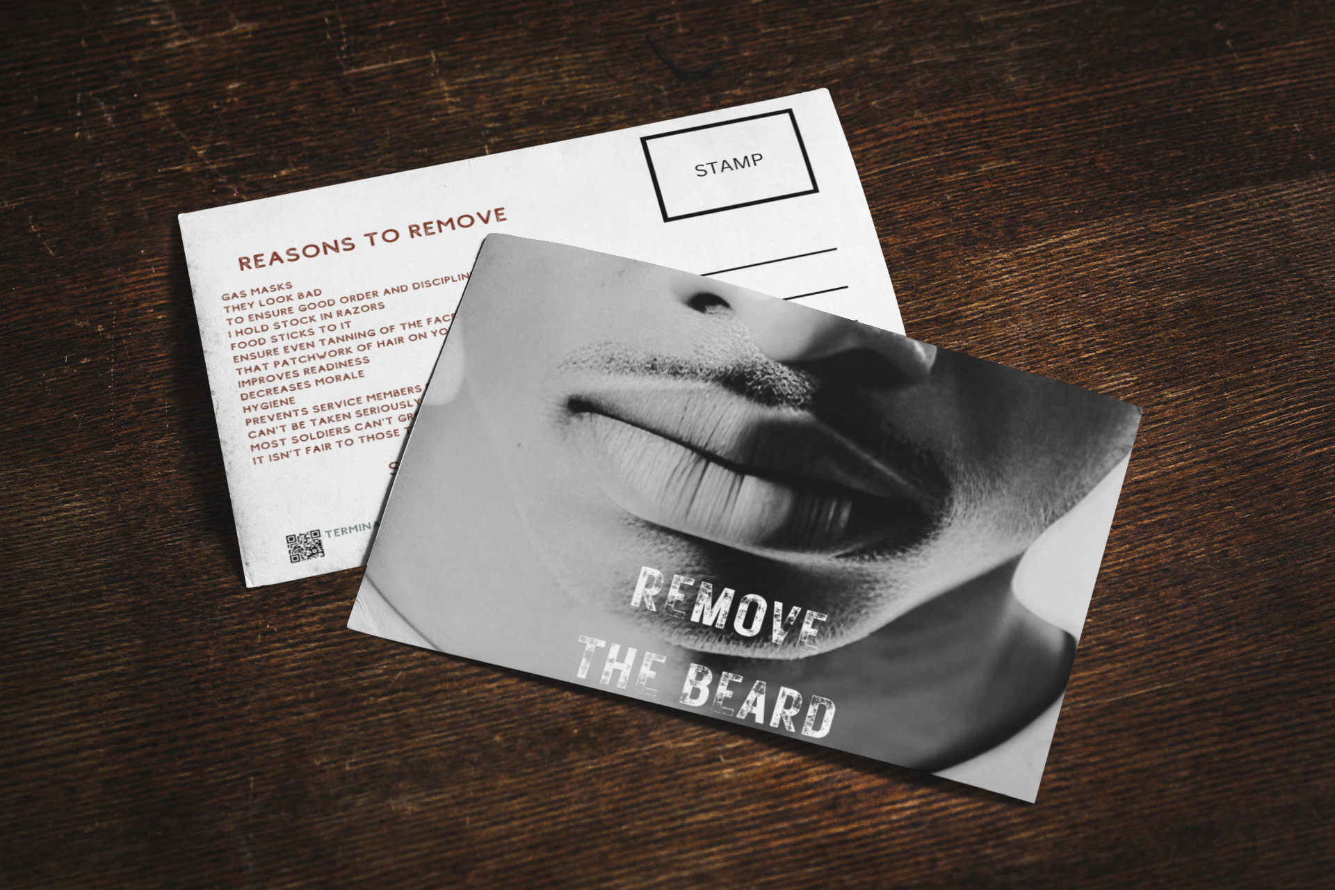 .99 Terminal Rank is on a mission, and we need YOUR help! Stand with us as we march towards a world where every Sergeant Major’s face can brave the winds without any whiskery shield! With just 99 cents, we will send a humorously persuasive “Remove-the-Beard” postcard to the CSM of your choice.