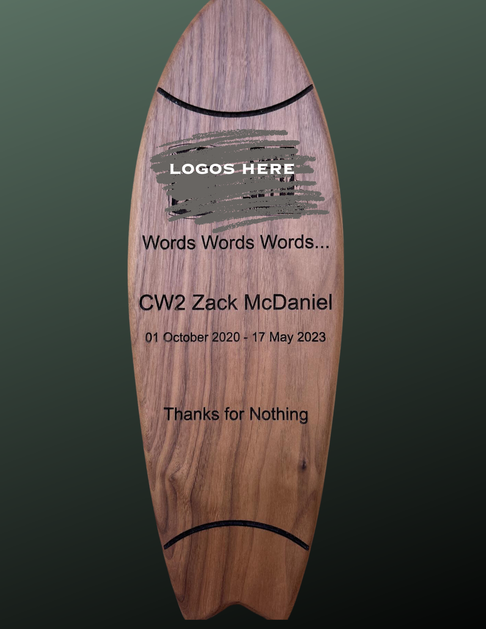 The stand can be set with unit coins to make the plaque a truly one of a kind gift for your special team member.