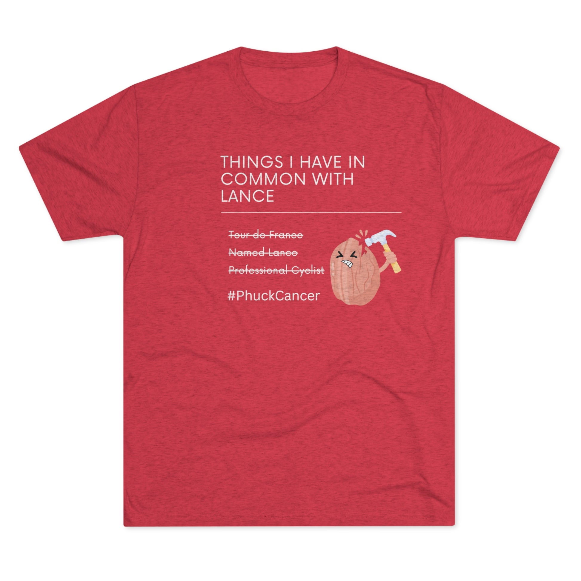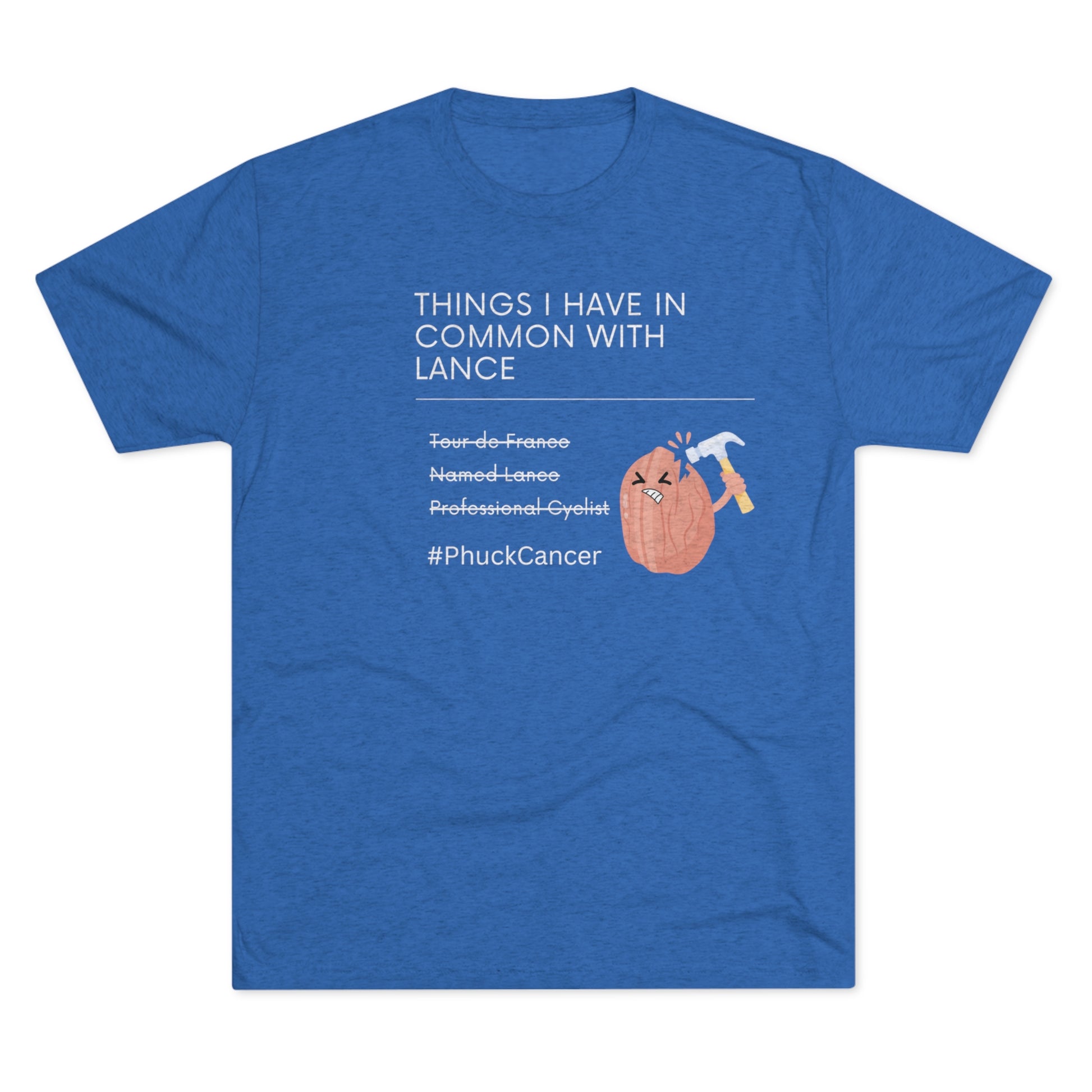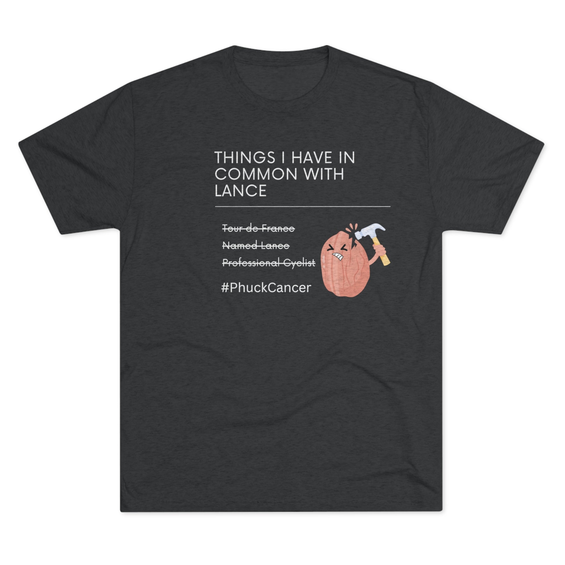 How many people can say they have something in common with Lance? Not man......so there is that. This high quality regular fit tee has a casually elegant vibe. Additionally, unbelievably soft tri-blend fabric makes it extremely comfortable - once put on, impossible to take off.